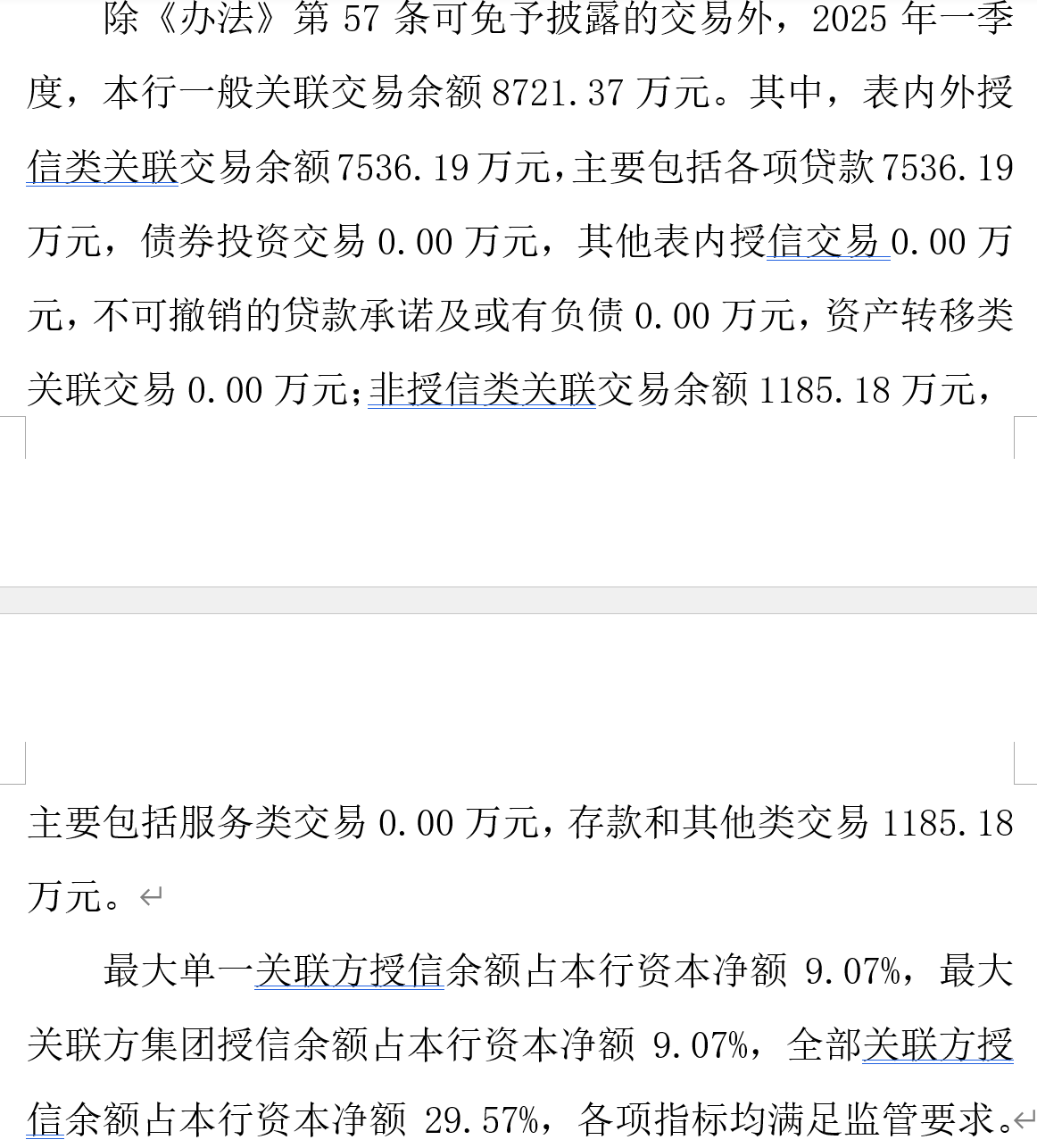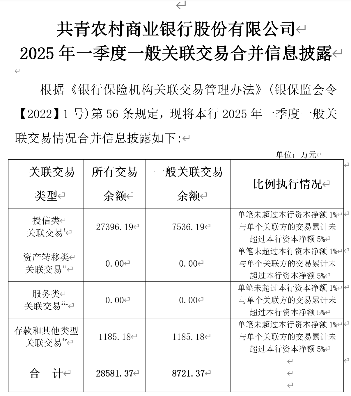 共青农村商业银行股份有限公司2025年一季度一般关联交易合并信息披露