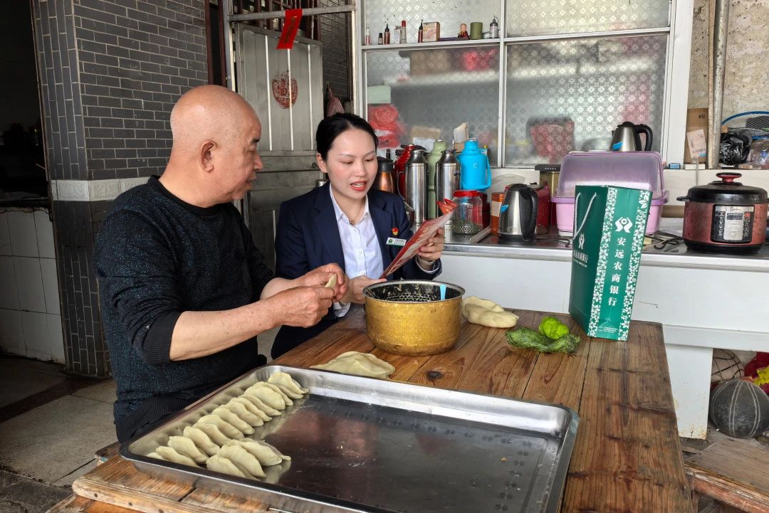 ▲安远农商银行客户经理走访官溪村“百福生活圈”商户