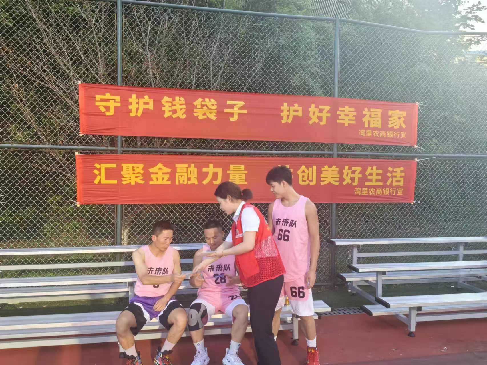 篮球赛场赛事正酣,金融守护一路相伴。7月流火,湾里管理局2024年“航四杯”暨第二届“强农杯”、第十届“梅岭健康杯”篮球邀请赛在磨盘山公园篮球场鸣哨开赛!32支队伍你争我夺,攻防之间赢得场下欢呼声此起彼伏。赛场之外,湾里农商行金融知识宣传同样如火如荼!