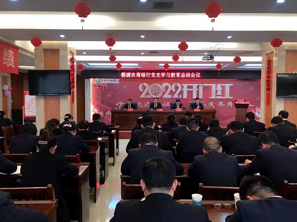 为落实中央党史学习教育总结会议精神,总结党史学习教育工作,1月6日,婺源农商银行召开了党史学习教育总结会议。总行班子成员、资深专员、各党支部书记、各部室及各网点负责人参会。